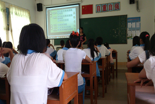 作为广外学子的特色,英语是此次教授的重点课程。第三天的英语教学内容主要是基础音标和词汇扩展知识。在教授音标时,老师先带领着全班同学把音标朗读一次,然后再针对每个音标进行单词举例,并列举了一些“选不同”的音标辨析题。同学们求知热情很高,课程中的互动都很踊跃地参与。而在利用趣味性游戏对同学们进行单词拓展时,因为发现到场同学中有一部分是低年级同学,队员们按照由易到难的程度临时更换了一部分简单词汇。教学过程中队员们发现学生们的英语学习习惯不太好,所以在接下来的时间里老师也讲授了拼写等英语学习的正确方法。