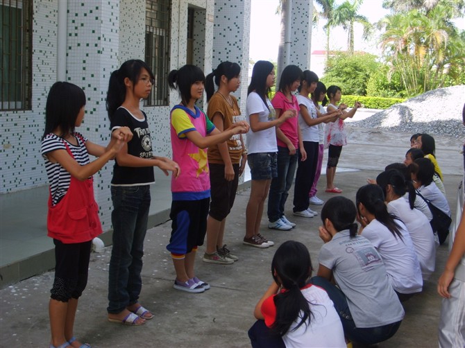“团结”是这个班集体最出彩的标签。无论吃饭,游戏,上下课,都能遇见他们三五成群的影子,以至每次听到学生喊我都像在欣赏多重唱。当我决定让全班同学共同表演手语《小酒窝》时,从到达漠南的第二天开始,每天下午精英们都一遍遍不厌其烦的跟着金原老师排练。重复着同一件事固然会让人倦怠,但精英们依然坚持到了最后,从最开始要求动作要熟练整齐,到后来我们很严格的让他们赋予动作情感,面带微笑……他们一遍比一遍做得好,班里的同学也常常围在乒乓球台互相检查彼此的动作正确与否。在课后,也不断有同学询问这个词语怎样比划,那个手势是朝什么方向转圈。最终成就了文艺表演会上一道特殊的风景线。正如金原老师看着他们忍不住一起比划起手语一样,我看着他们齐唰唰跳舞的手指,好美,美得让我心生感动,美得让这首歌有了生命。不是么?这是他们十天来共同努力的结果,团结的班级,所向披靡!