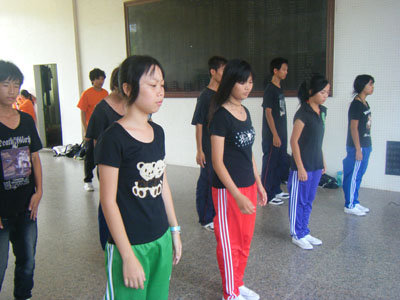 学生在积极地练习着手语