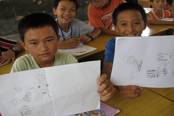 用色彩单一的粉笔教你们画出可爱的卡通,