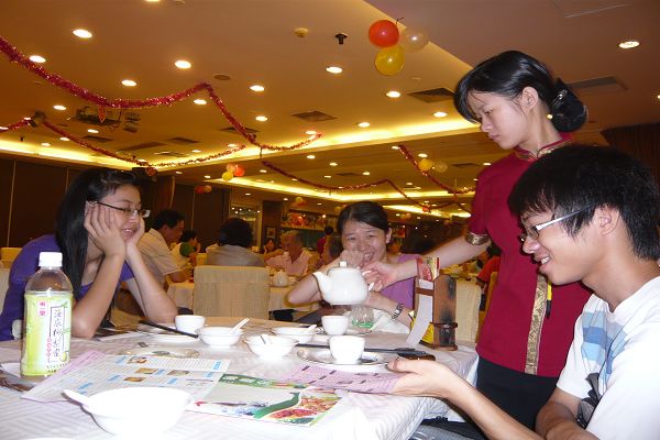 此后,我们借机问服务员拿来中英文菜单,就开始“工作”了。那份菜谱外形十分庞大,这无疑给我们隐蔽拍摄带来很多问题。有队员提出将菜谱带去洗手间进行拍摄,可由于过于冒险而被否决。最后我们分工合作,一些队员负责“看风”,一些队员在闲聊、互相拍照,负责“打掩护”,李队员就进行拍摄。很多次服务员过来的时候,李队员都警惕地把相机收起来,以免被发现。整个过程我们都在小心翼翼地进行。
