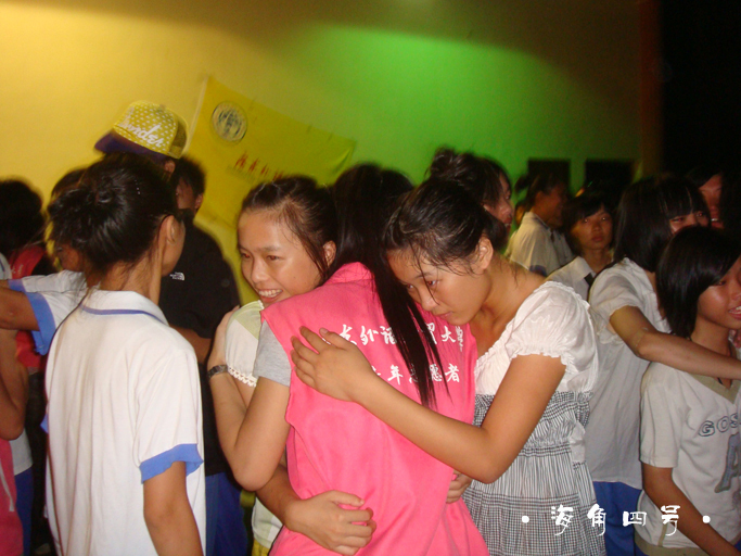 晚会最后,“海角四号”一曲《手牵手》把全场学员带进一股凝重的气氛中,不忍别离,学生们纷纷从台下走上台,热情地拥抱着每一位队员,眼泪、歌声,夹杂在一起,共同构成了晚会终结的舞曲。