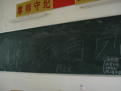 一班的孩子年龄小,是老师眼中最调皮的学生,但此刻他们似乎也隐约感受到了离别的伤感,黑板上的一句“老师,有缘再见”让老师真切感受到孩子们的不舍之情。