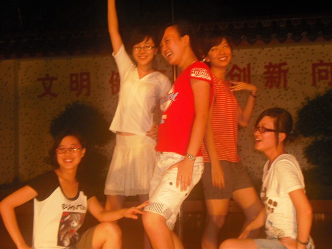 当晚的晚会可谓是对“爱心接龙”队教学成果的大检验,刚柔并济的太极表演,幽默风趣、反映下乡生活的小品,优美动听的英文歌合唱,励志动人的手语表演等精彩节目,都在当晚的观众中引起了强烈反响。而老师们献上的流行歌曲串烧和新潮动感的Nobody舞蹈则展现了当代大学生的风采,将整场晚会的气氛推向了高潮。晚会结束时全场学生的兔子舞也再度点燃起大家心中的激情。