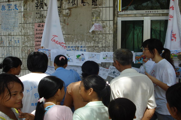 中午十二点半,良光志愿者服务队宣传组的成员们不顾烈日当空,积极地布置宣传栏,为卫生常识有奖竞猜做好充分的准备。随着时间的推移,村民们陆陆续续聚集在宣传栏周围,他们都对宣传栏上的内容十分感兴趣,对着大小各异的图片议论纷纷。在宣传组成员们的讲解下,村民们对卫生常识有了更进一步的认识,纷纷向宣传员们提问各种各样与日常生活有关的问题。