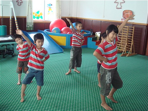 残联小朋友还献上了精心准备的舞蹈《健康歌》、《可爱的蓝精灵》等,在老师的引导下,他们的动作准确而舒展,从容而充满活力,他们的心灵世界,是一片阳光灿烂。