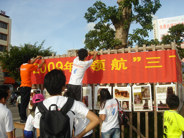 简单的一条横幅,两张桌子,十几张展板,“领航”服务队的宣传摊位成为当天下午雷城南湖广场上一道独特的风景线,场面异常火爆。