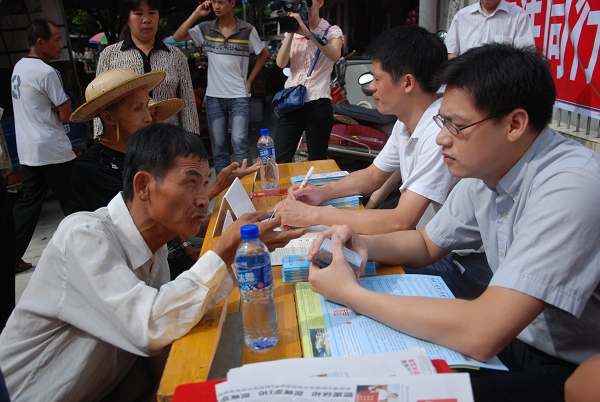 本网讯 为了发挥法学院的专业优势,帮助周田镇的农民用法律武器解决自己的问题,捍卫自己的权利,法学院“together”三下乡服务队于7月22日早上在韶关市仁化县周田镇法庭门口举行了大型普法活动,同时还开展了介绍广外,宣传亚运以及禁毒的图片展。来自仁化县司法局普法办的杨局长和工作人员,以及广东韶大律师事务所的两名律师前来参与了普法活动。韶关电视台,韶关电台,韶关日报以及仁化县电视台等媒体都对这次普法活动进行了报道。