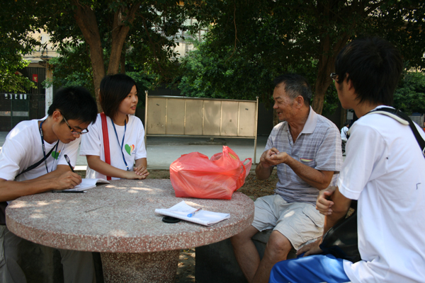 采访中了解到,这位阿伯姓叶,已有73岁的高龄,是跟随外出打工的儿子10年前从云浮迁移过来桂林街的。队员还向叶老伯了解到,在桂林街居住的居民近一半是外来人口,队员还收集到当地居民收入、养老保险、民主意识等方面的有关资料。