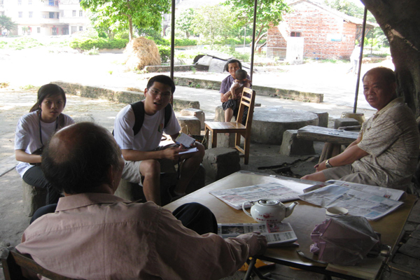 7月18日,该队调研小组就《以工业化带动新农村建设》的调研主题,对肇庆市端州区睦岗镇桂林街社区居民进行了调研采访。在调研中,队员们分成三个小分队,分别对居民经济收入、参与居委自治情况、文化生活、参加医保情况以及对治安的满意度等方面进行了调查。