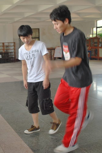 图书馆的舞蹈室里,三位教华尔兹的老师向学生们传授着基本动作。等到临下课时,学生已经大致学会了基本的舞步,并能跟随着老师翩翩起舞,整齐划一的动作煞是令老师欣慰。街舞的难度就高多了,到了最后,只剩下三个男生“坚守阵地”跟着街舞老师学动作了,其他同学则都转移到“华尔兹”的地盘上去了。