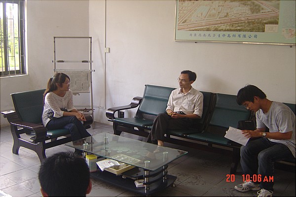 参观后,调研成员们回到了茂港区水果局,对水果局的局长周建生进行访谈。通过访谈,可以得知政府对水果企业的深加工非常支持,同时,也给企业很多支持,例如税收,水电等以及其他有关的政策支持。