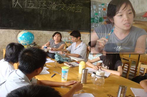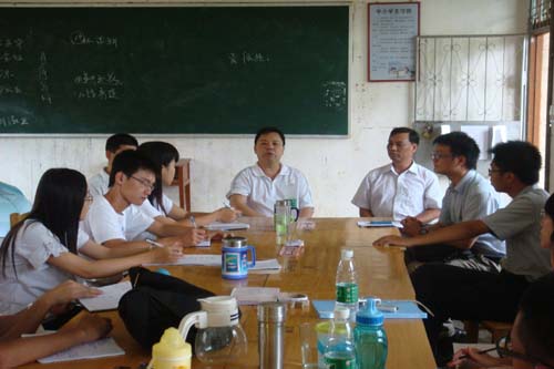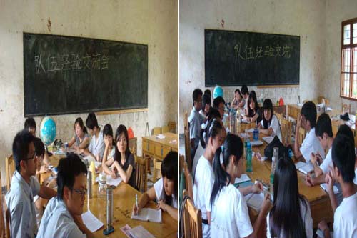 “爱依然”副队长姜楠说明了几天来遇到的队员形象、宿舍情况等问题,并对学校的积极配合表示感谢,义教组组长介绍了4天来教学气氛、教学科目、老师反馈等教学情况及晚自习辅导情况,以及宣传组开展的已获得较大成效的每日英语角,该活动增强了学生自信心,使一些较害羞的同学已能够开口大声讲话。调研组组长说明了调研遇到的语言、联系等问题及解决方案,并介绍了调研采用的几种方法及进展安排。