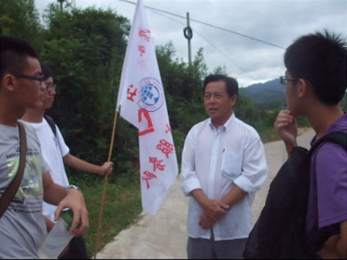 该队来到一处农舍家中。这里的主人廖先生是一位小卖部零售商,同时也经营种植业和猪肉的售卖。在采访中队员们了解到廖先生家中主要以种植水稻和花生为主,产品主要是自给自足,花生主要用于榨油以供自给,多余的农产品才将其送往市集销售。队员们顺便就道路交通问题对其农产品销售的影响进行了询问,据了解,在该公路修好以前很少人来此处收购农产品。修通后,随着人流、车辆购置的增多,将农产品运往市集变得更加方便。但是廖先生认为,交给中间商收购约为1元一斤,而亲自将水稻作物运至市集售卖则可卖1.6元一斤,因此更愿意亲自将谷物售往市集。另外该队还从中了解到不少外省的民工来此工作,该地的采育业工作主要由他们承担,从而推动了本地采育业经济的发展。