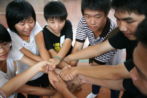 经过了将近一个小时的时间,由五位A班男生组成的分队第一个完成了所有游戏并冲到终点站。看着洋溢在他们脸上那兴奋的表情,旁边的工作人员也开心地与五位胜利者一一击掌庆祝。