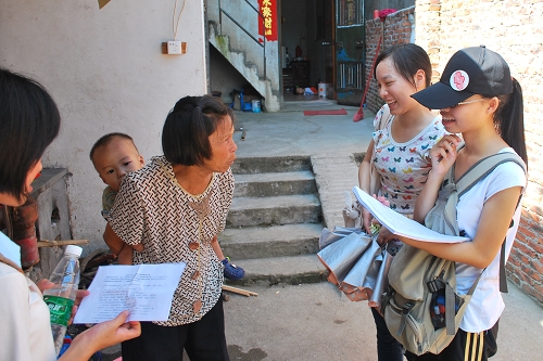 早上9点整,调研组组长梁文智和饶丽冬分别带领两个调研小分队,以龙门中学为中心,兵分两路出发。两队分别深入到了大塘村、水头围、城郊村、何屋村及青溪,进行调研和问卷派发。下午5点两支分队返回龙门中学会合,由组长梁文智进行调研总结。他们一致发现,虽然农民一致支持此项政策,但由于各种原因,龙门县农民购买“家电下乡”产品的人数比例并不高,政府宣传亦尚有疏漏。