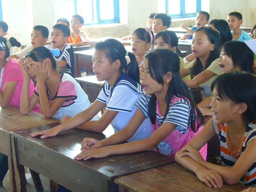 虽然这群孩子平时有些调皮,上课也不大安分守己,打打闹闹。但是,他们在晨读时却很认真,都放开了嗓门,跟着义教队员大声朗读。