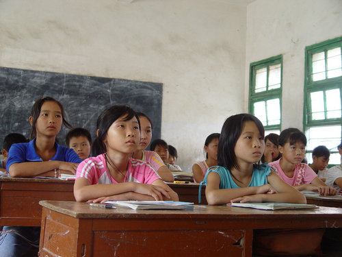 课堂上,当老师问学生他们的理想时,学生们异口同声回答:“考上大学!”课后,学生们在操场上和老师们一起玩耍。“树雄心”、“立壮志”、“攀高峰”,凰渐小学教学楼上的标语,让人感动。