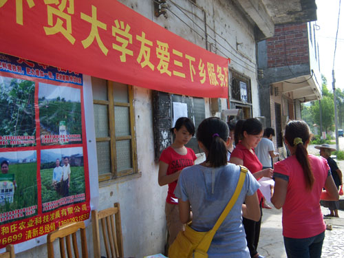 本网讯 7月17日上午,我校工商管理学院“友爱”三下乡服务队宣传组在清远市清新县当地开展了卫生知识普及宣传活动。