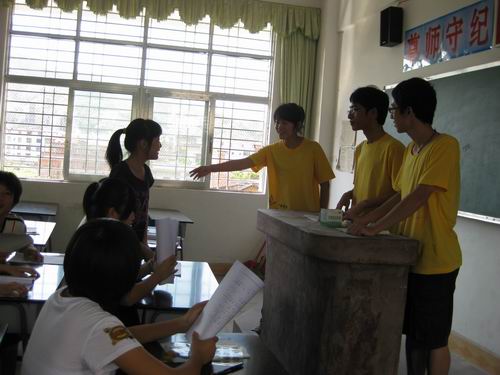 一天之中,宣传组跑前跑后为各种活动作记录,义教组尽心尽力备课讲授,调研组在烈日下奔波走访。然而,汗水与疲劳并没有使队员的热情减弱,却让队员的心灵更加满足。