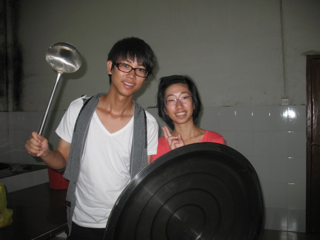 随后,组员们便开始“下厨”了。偌大的锅,偌大的鼎,偌大的勺子和铲子,堆放在一边的木柴需要组员们把它们一一劈成片。煮饭时,组员们计算着28个队员需要的米量和加入的水量。他们相互帮助,生火、提水、砍柴,即使条件简陋,却都乐在其中。第一次做28人吃的饭,组员难免有些手忙脚乱,尽管最后饭量不足,但这个过程他们一起体验,一起欢笑,队员们觉得,这是他们吃过的最美味的饭。