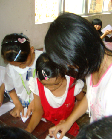 同学们专心投入,按照要求一步步跟着我做。每一步我都亲自指导,同一个动作重复十几次。最后,看着学生制作的一个个成品,有些甚至折得比我还好,心里乐滋滋的,觉得再多的辛苦也是值得的!