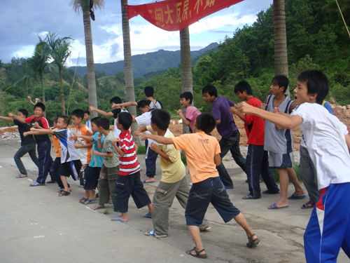 “武术传正统,华夏振雄风。”在乡间,队员将自己仅会的散打技术传授给了所有尚武的学生。虽然学生的动作并不规范,但是颇有气势,尽显“男儿当自强”的精神。