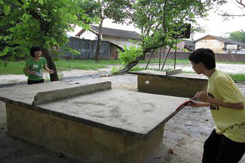 义教放学后,离吃饭还有一段时间,队员们放下一天的工作运动身体,放松心情,顺便打发一下时间。由于准备充足,队员们都各有节目。最热的就是踢毽球了。队里卧虎藏龙,不时出现飞毛腿、剪刀腿。队长蔡同学,凌空一跃,快、准、恨的进攻令对手防不胜防,无法招架。第一天的三下乡生活真可谓有声有色。