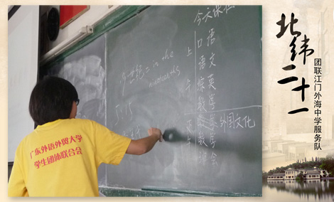 本网讯 7月15日中午,广东外语外贸大学学生团体联合会“北纬二十一”三下乡服务队抵达江门市外海中学。