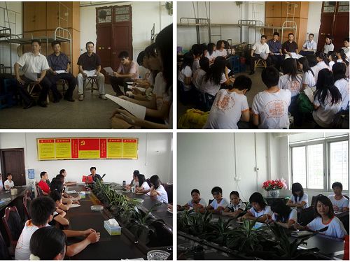 随后,校方领导老师在队员宿舍召开了一个简短的见面会。副校长张志彬对Buddy Rush此次的三下乡活动给予了高度的评价,并希望这次三下乡活动能顺利进行,取得完满成功。接着,在张志彬副校长的带领之下,全体队员一同来到学校会议室里,召开队员与班主任的见面会。会上,校方领导对队员们的到来表示热烈的欢迎,并表示此次三下乡活动必将促进双方的发展,同时给学生们带去一个充实愉快的暑假。