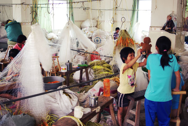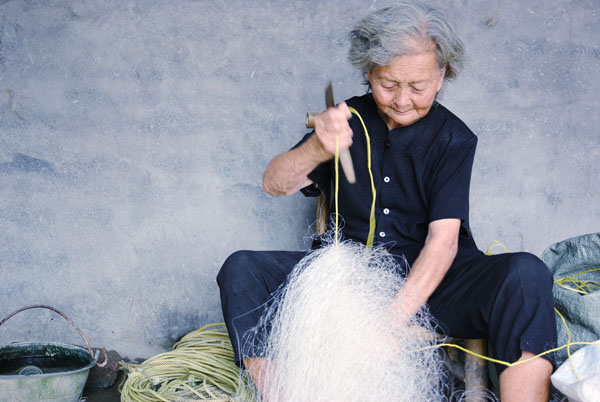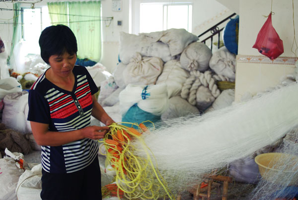 编者按 完成一张渔网可以得到3.2元,一天10小时的工作换来的也只是不到30元的收入,但是他们已经很满足。