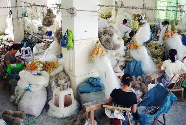 鸡乸朗村的家庭式渔网编织厂