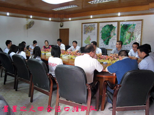 经过两个多小时的车程,汽车抵达四会迳口镇。在当地相关领导的亲力关怀下,队员们入住了当地的迳口中学。在一行人到达当地镇政府之后,领导班子忙里抽闲,第一时间为挂职队员和指导老师召开了接待会。
