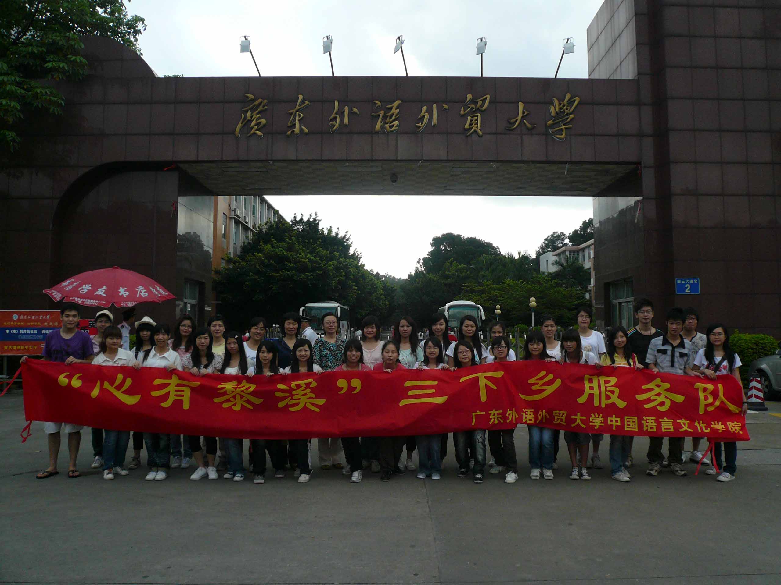 本网讯 2009年7月12日早上9:00,广外中文学院五支三下乡服务队共100多人,准时从学校正门出发,分别前往四会、黎溪、黄花、西牛和浛洸的下乡基地,进行为期半个月的三下乡义教和挂职等服务活动。