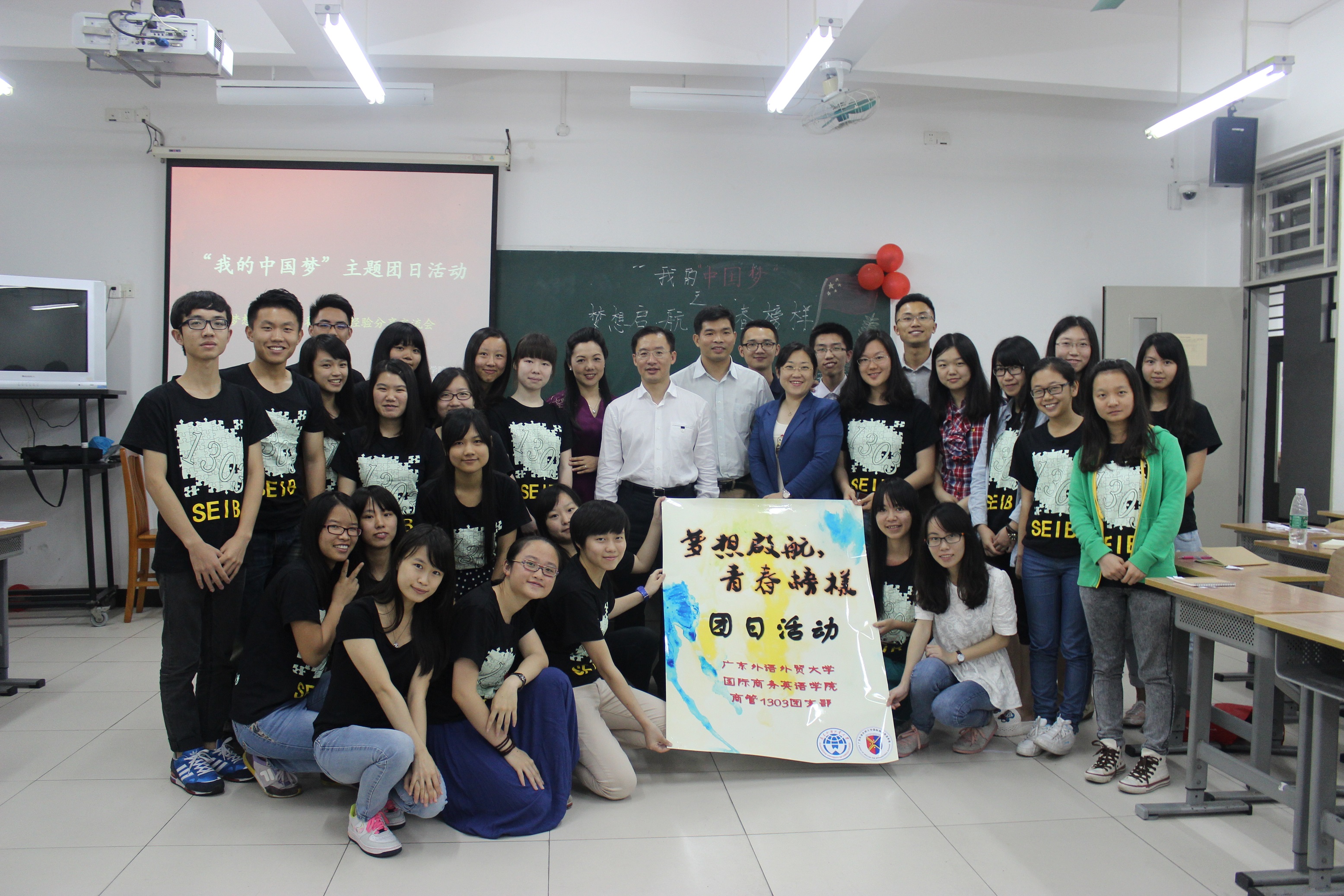 编者按 “有大志、谋大事、顾大局、成大器”是校党委书记隋广军对我校青年师生的鼓励。校长仲伟合寄语“青年兴,则广外兴;青年强,则广外强”。自2012年第四次团代会以来,广外共青团在校党委、团省委的坚强领导和亲切关怀下,紧紧围绕学校建设高水平大学的中心工作,坚持“青年为本、求真务实、科学发展、争创一流”的要求,以人的全面发展为目标,以“我的中国梦”教育实践活动为主线,以大学生素质拓展计划为总揽,以组织建设、学术创新、社会实践为重点,致力于培养全球化高素质公民,团结带领全校团员青年发挥党的助手和后备军作用,书写了共青团事业发展的宏伟篇章。我校第五次团代会即将于2015年12月20日召开。值此时刻,以此专题回顾我校共青团3年的发展历程,共同展望我校共青团事业未来的发展。