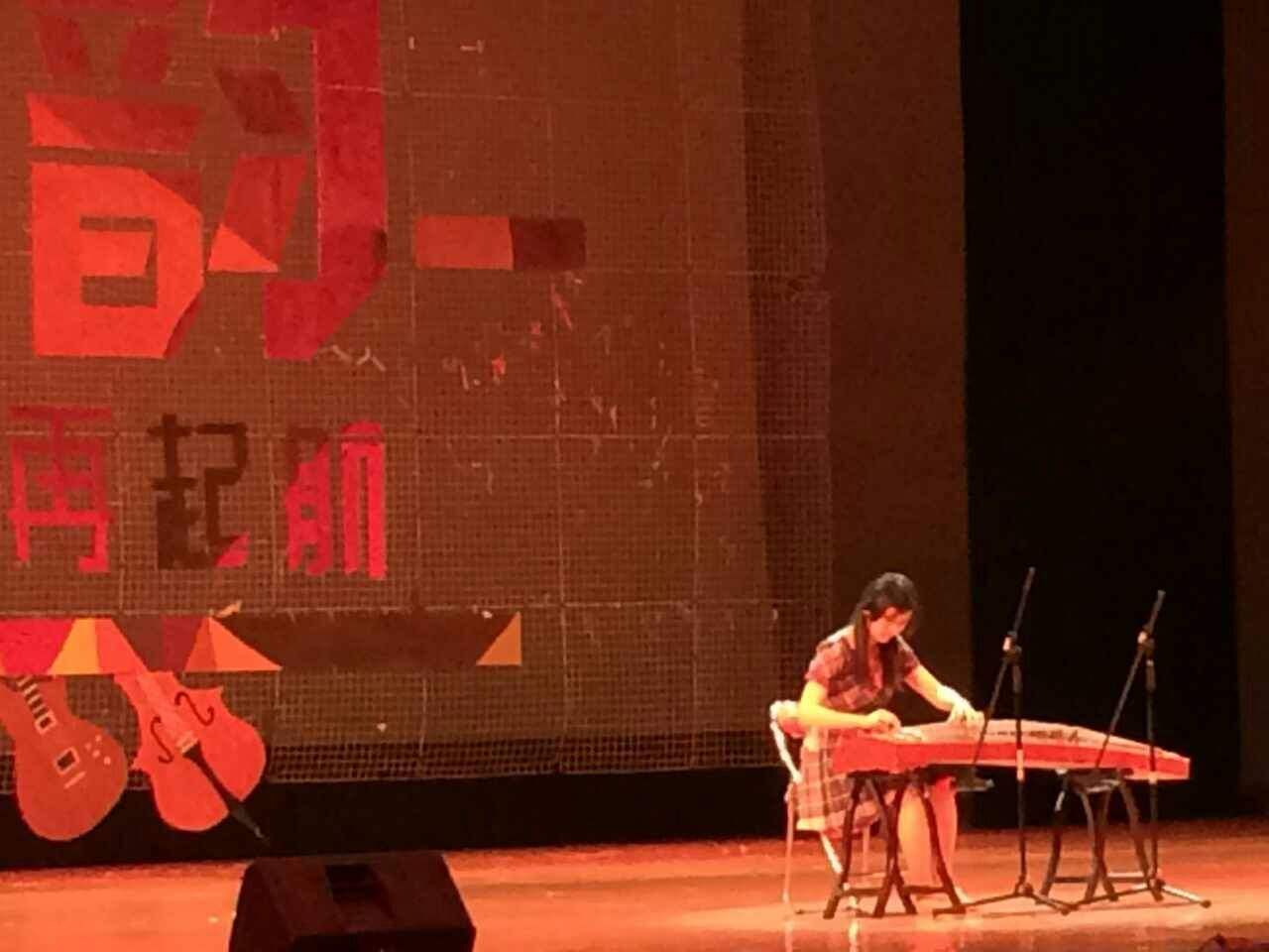 梁萌萌在比赛现场弹奏古筝