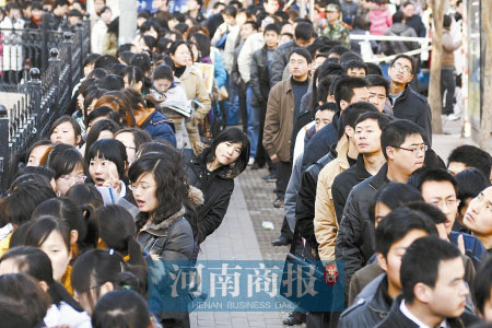 河南某高校招聘会:男女各一队