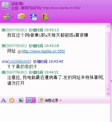 某同学QQ中病毒后在Q群上发布兼职信息