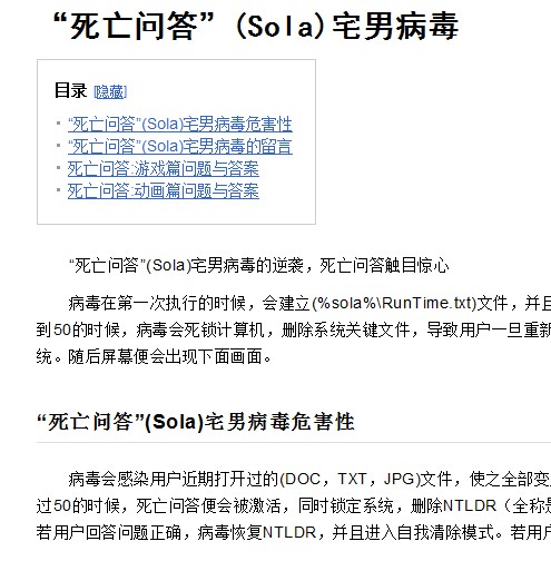 “死亡问答(苏拉病毒)”在百度百科上的描述