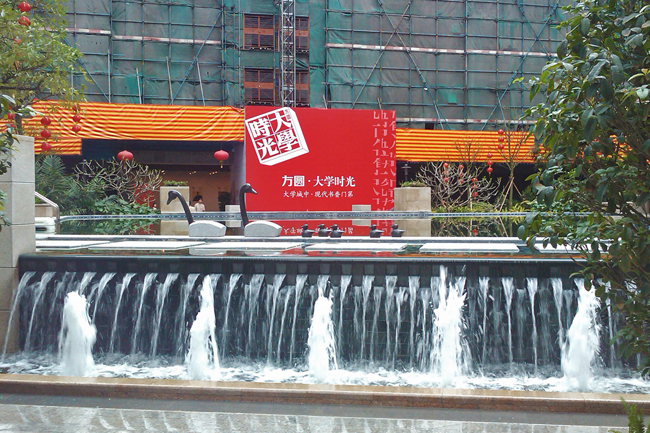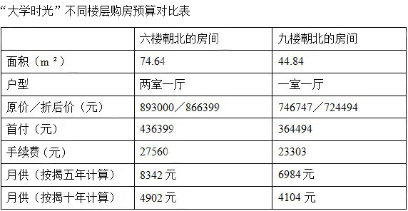 据了解,“大学时光”楼盘由方圆地产控股有限公司投资,销售由方圆地产顾问代理。销售户型主要为酒店公寓式的中小户型。“大学时光”每平米的房价均价为15000元,最低12000元,最高18000元。产权为商业用地的40年。按揭方案为首付五成,按揭五年或十年,由工商银行办理。物业管理费为2.5元每平米,与广州均价持平。装修费为基本装修的2500元,20-40平米的小户型带空调等基本家电。交房时间为2011年4月。
