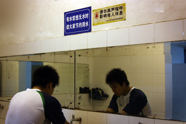另外一位来自贵州的同学也向记者提到了她们宿舍的改变。她说自从这学期开学以来,她就在宿舍内宣传各种节水理念,为此她还把原来储水的小桶换成了大桶,以便大家将更多的水循环利用。除此之外,她们宿舍还限制了洗衣机的使用次数。说到这点的时候,这位同学笑着说:“一开始我还怕她们不接受我的提议呢,没想到她们都很支持,大家都很想为灾区的人们做点什么,所以都很自觉。”