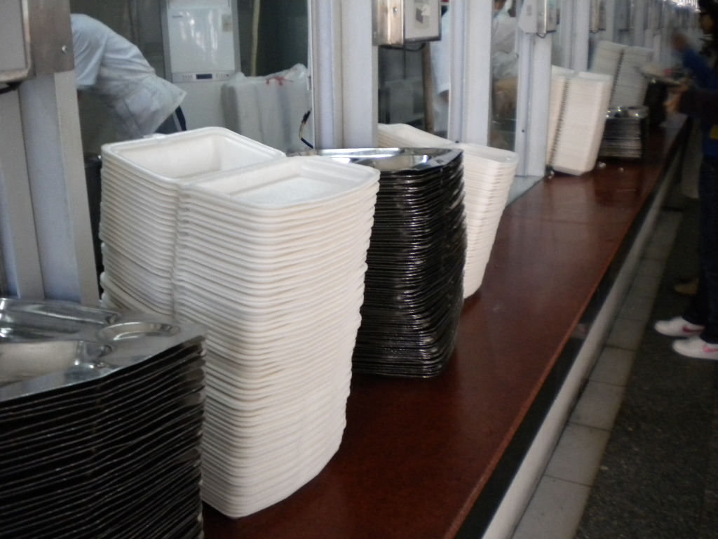 据北校饮食服务部的工作人员介绍,星期六至星期三,第一饭堂每天要消费掉近900个一次性饭盒,第二饭堂1350个,第三饭堂450个。虽然各食堂卖饭处均贴有“减少使用一次性饭盒”的标示,并且对一次性饭盒进行一定的收费,但是一次性饭盒的实际消费量并未有大幅度的减少。
