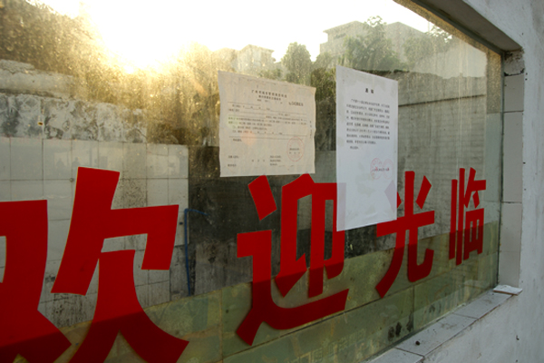 “欢迎光临”四个大字依旧鲜红,只是玻璃上多了一纸通告