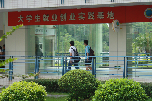 除了饭堂,同学们每天上学必经的A栋教学楼也发生了巨变。架空层装修一新,改建成了学生创业实践基地。据校学生处陈老师介绍,在国家鼓励大学生创业的背景下,学校开辟了这个创业实践基地,为在校学生提供一个创业实践的平台。
