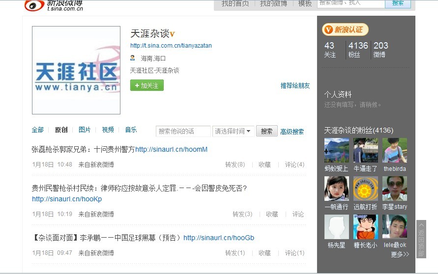 天涯社区的微博