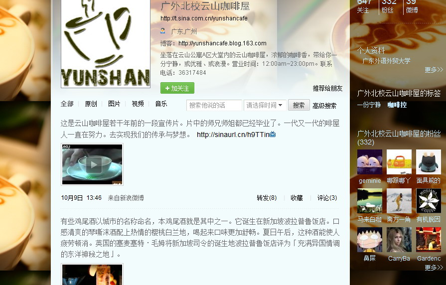 广外北校云山咖啡屋的微博