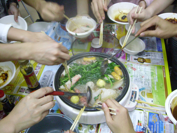 真可惜,今天冬至日是星期二,大概许多同学都不能回家和家人相聚。不过,也有许多同学选择留校与同学们一起过冬,而且大家在学校过节可说是各出新招奇招,精彩非常。