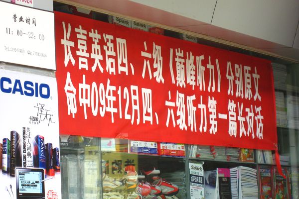 从小学到中学,再到大学乃至研究生,一路上是小升初英语、中考英语、高考英语、大学四、六级、考研英语与考博英语,还有出国热带动的托福、GRE、雅思等英语考试;从火热的英语冬、夏令营到爆满的英语培训班;从各种目的的考级考试到目前全国的英语培训机构达5万家左右等,“全民英语”显而易见。