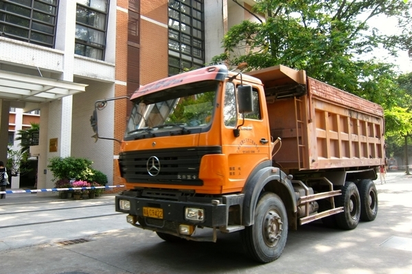 大卡车来往于二教和六教之间的路上(实习生 张帆)