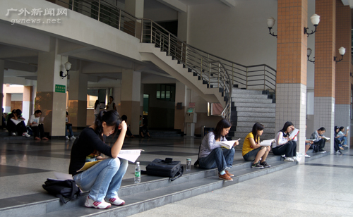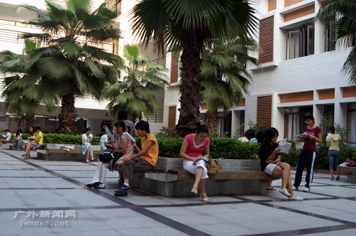此外,二教腹地围成的天井中的一座座花坛边,由于气氛环境适宜学习,也成就了天然读书的好地方。东语学院06级罗同学表示,喜欢很多人在一起晨读的环境,感觉到大家在朝着同一个目标前进,这会激励自己更努力地学习。